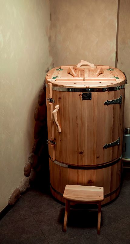 Это купель с внутренней овальной чашей, которая изготовлена из современного прочного и термоустойчивого материала (композита). Форма чаши обеспечивает комфортную посадку внутри изделия. Для удобного использования купель оснащена приставной лестницей. Обручи из нержавеющей стали декорируют купель с композитом и равномерно распределяют нагрузку во время процедур.